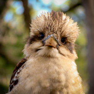 Su canto se parece más a una risa histérica, un chillido o una carcajada humana. Algunas personas se asustan con esto, pero simplemente es la forma de comunicación del kookaburra.